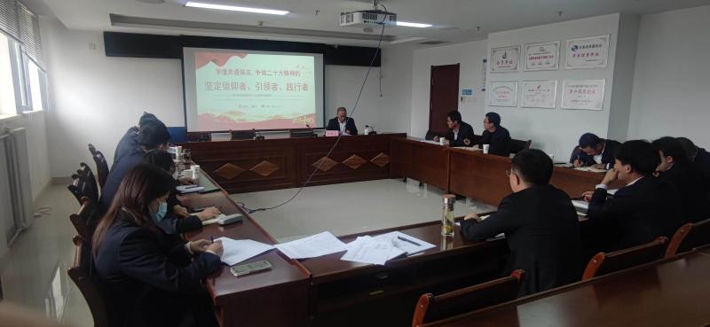 劉新文強調,一是要把學習好、宣傳好、貫徹好黨的二十大精神作為當前和今后一個時期的首要政治任務抓緊抓實抓細,深刻領悟“兩個確立”的決定性意義,當好“兩個確立”的忠誠擁護者、“兩個維護”的忠誠捍衛(wèi)者,要始終牢記“三個務必”,深入學習黨的二十大報告提出的重大理論觀點、重大目標任務、重大戰(zhàn)略舉措,準確把握報告的豐富內涵、精神實質、實踐要求。二是充分領會習近平新時代中國特色社會主義思想的真理力量和實踐偉力,學會在新形勢、新要求中把握規(guī)律和大勢,弘揚偉大建黨精神,抓住時機、順勢而為,扎實推動習近平新時代中國特色社會主義思想和黨的二十大精神入心入腦、落地落實。三是要緊貼崗位結合自身實際,做到知行合一,領導班子及各職能、事業(yè)部負責人要進一步明確責任,強化主責意識,對各自主抓的工作進一步細化任務、明確時限、壓實責任,拉清單、建臺賬,抓督導、強推進,確保各項工作高質量完成。四是要以“闖”的精神、“創(chuàng)”的勁頭、“干”的作風,打造一支能打硬仗、清風正氣的干部員工隊伍,爭取達到思想一致、步調一致、方向一致、結果一致的目標效果。在公司發(fā)展上抓住機遇,提升公司整體凝聚力,從而達到提質增效的目的。
