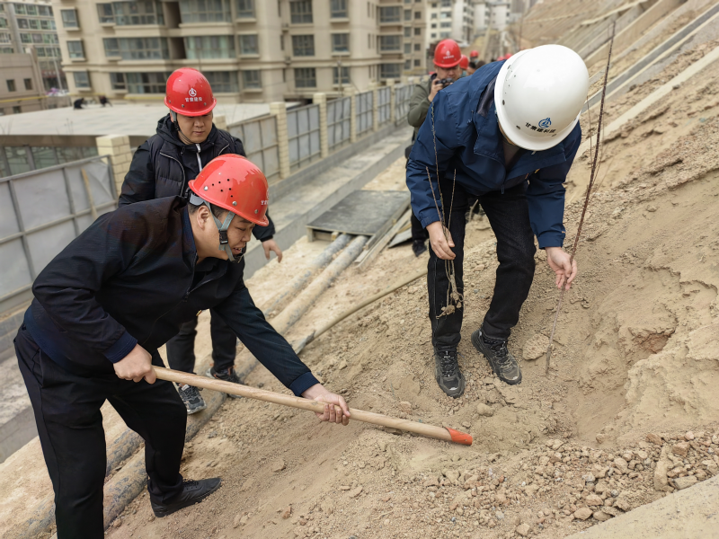 春回大地萬物蘇,植樹添綠正當(dāng)時(shí)。3月15日下午,甘肅建科院建研建設(shè)公司黨支部依托九洲新華小區(qū)邊坡加固綠化項(xiàng)目,與項(xiàng)目甲方甘肅新華房地產(chǎn)公司黨支部開展支部聯(lián)建植樹節(jié)主題黨日活動(dòng)。兩單位領(lǐng)導(dǎo)班子成員、支部委員、團(tuán)員青年代表、勞務(wù)班組代表共計(jì)40余人參加了本次活動(dòng)?;顒?dòng)由甘肅建科院建研建設(shè)黨支部副書記孫藝珊主持。