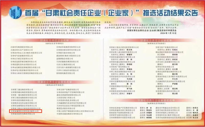 日前,由甘肅日?qǐng)?bào)社、甘肅省人民政府國(guó)有資產(chǎn)監(jiān)督管理委員會(huì)、甘肅省工商業(yè)聯(lián)合會(huì)、甘肅省社會(huì)科學(xué)院聯(lián)合舉辦的“首屆甘肅社會(huì)責(zé)任企業(yè)(企業(yè)家)推選活動(dòng)”已順利結(jié)束,甘肅省建筑科學(xué)研究院(集團(tuán))有限公司榮獲“甘肅社會(huì)責(zé)任企業(yè)提名”。