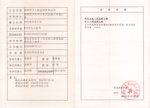 礦山工程監(jiān)理乙級資質(zhì)證書!
