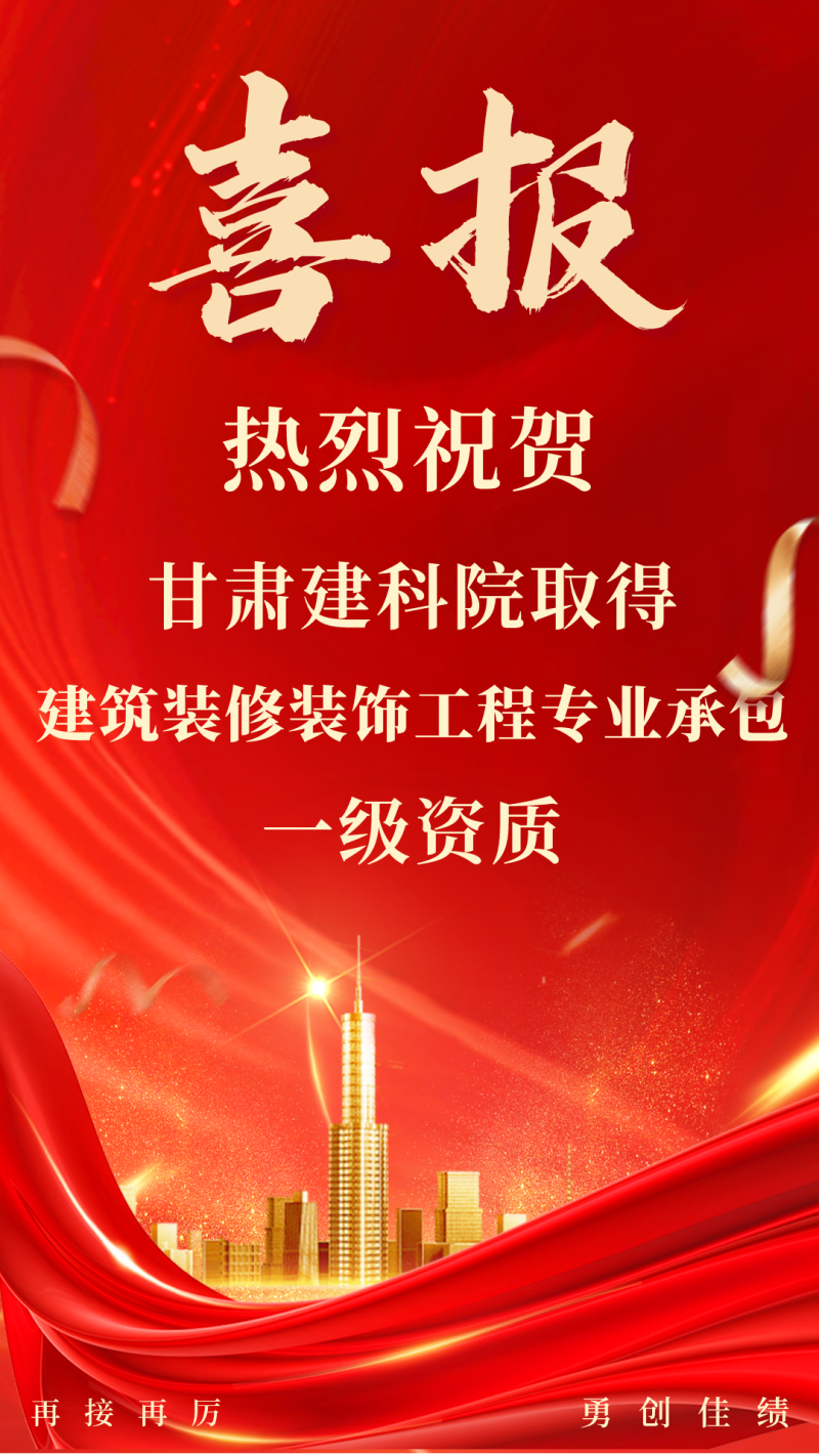 【喜迎職代會 奮進新征程】甘肅省建筑科學(xué)研究院(集團)有限公司取得建筑裝修裝飾工程專業(yè)承包一級資質(zhì)