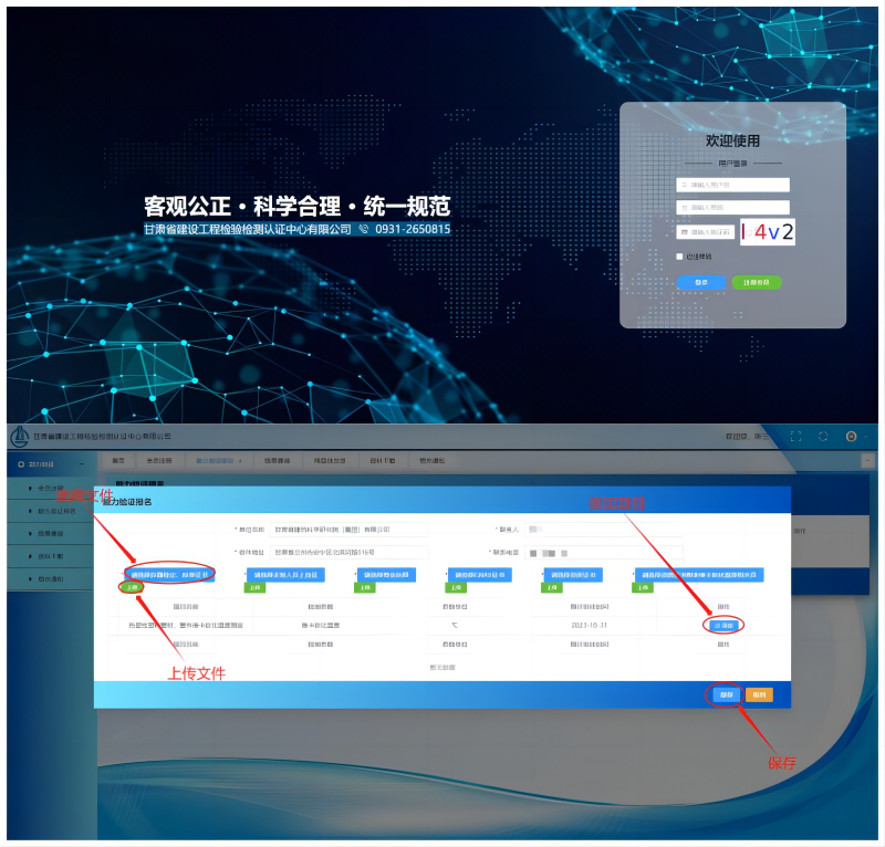“能力驗證系統(tǒng)”分為管理端和用戶端兩個模塊,參加能力驗證報名的單位可通過甘肅省建筑科學研究院(集團)有限公司官方網(wǎng)站進入“能力驗證系統(tǒng)”進行注冊并登錄。通過“能力驗證系統(tǒng)”即可完成能力驗證報名、資料下載、數(shù)據(jù)上傳以及結果查詢等業(yè)務。甘肅省建設工程檢驗檢測認證中心有限公司可使用管理端對報名單位信息進行審核與批復。該系統(tǒng)替代了以往使用郵寄紙質材料的傳統(tǒng)資料收集方式,使用數(shù)字化網(wǎng)絡平臺極大簡化了收集過程,提高了工作效率,提升了企業(yè)信息化、數(shù)字化建設水平。