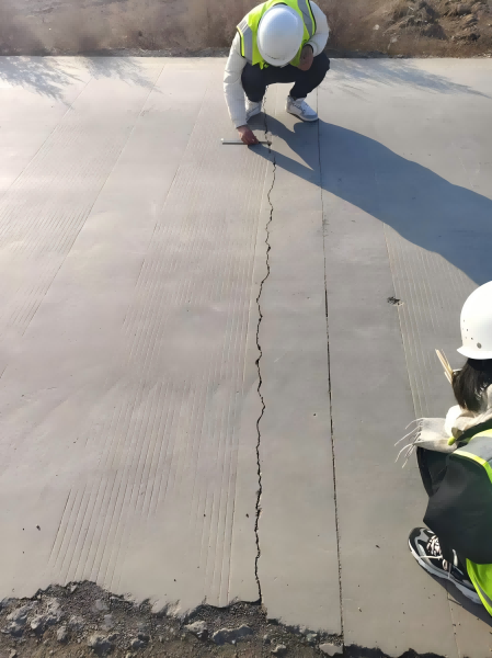 在項(xiàng)目質(zhì)量檢測過程中,檢測人員認(rèn)真查閱工程資料,對照工程圖紙,實(shí)地查驗(yàn)每條道路,沿著每條道路,認(rèn)真對照圖紙規(guī)范,嚴(yán)格對相關(guān)指標(biāo)進(jìn)行檢測,對不符合技術(shù)指標(biāo)的里程樁號進(jìn)行詳細(xì)登記,結(jié)合工程資料、現(xiàn)場檢測情況,形成相關(guān)報告,提出意見建議,最終反饋至蘭州新區(qū)城鄉(xiāng)建設(shè)和交通管理局。