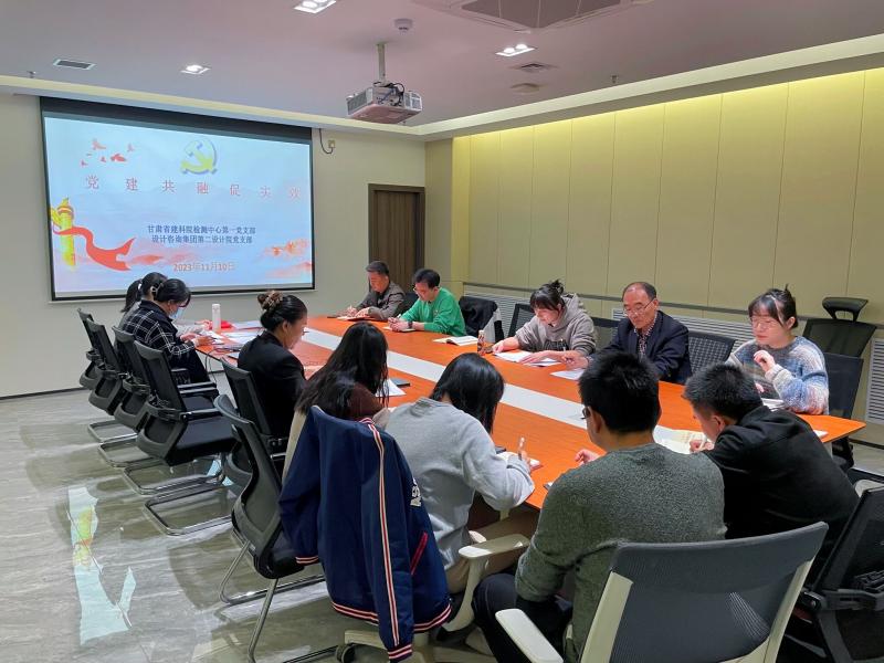 為深入開(kāi)展學(xué)習(xí)貫徹習(xí)近平新時(shí)代中國(guó)特色社會(huì)主義思想主題教育,進(jìn)一步推動(dòng)黨員干部深刻領(lǐng)會(huì)“三抓三促”行動(dòng)重要意義,提升黨建工作水平,加強(qiáng)黨建和生產(chǎn)經(jīng)營(yíng)融入融通融合,實(shí)現(xiàn)黨組織優(yōu)勢(shì)互補(bǔ),11月10日下午,甘肅建科院檢測(cè)中心第一黨支部與甘肅省建設(shè)設(shè)計(jì)咨詢集團(tuán)有限公司第二設(shè)計(jì)院黨支部開(kāi)展“黨建共融促實(shí)效”黨建聯(lián)學(xué)聯(lián)建主題黨日活動(dòng)。雙方單位黨員代表、業(yè)務(wù)骨干代表共同參加了活動(dòng)。