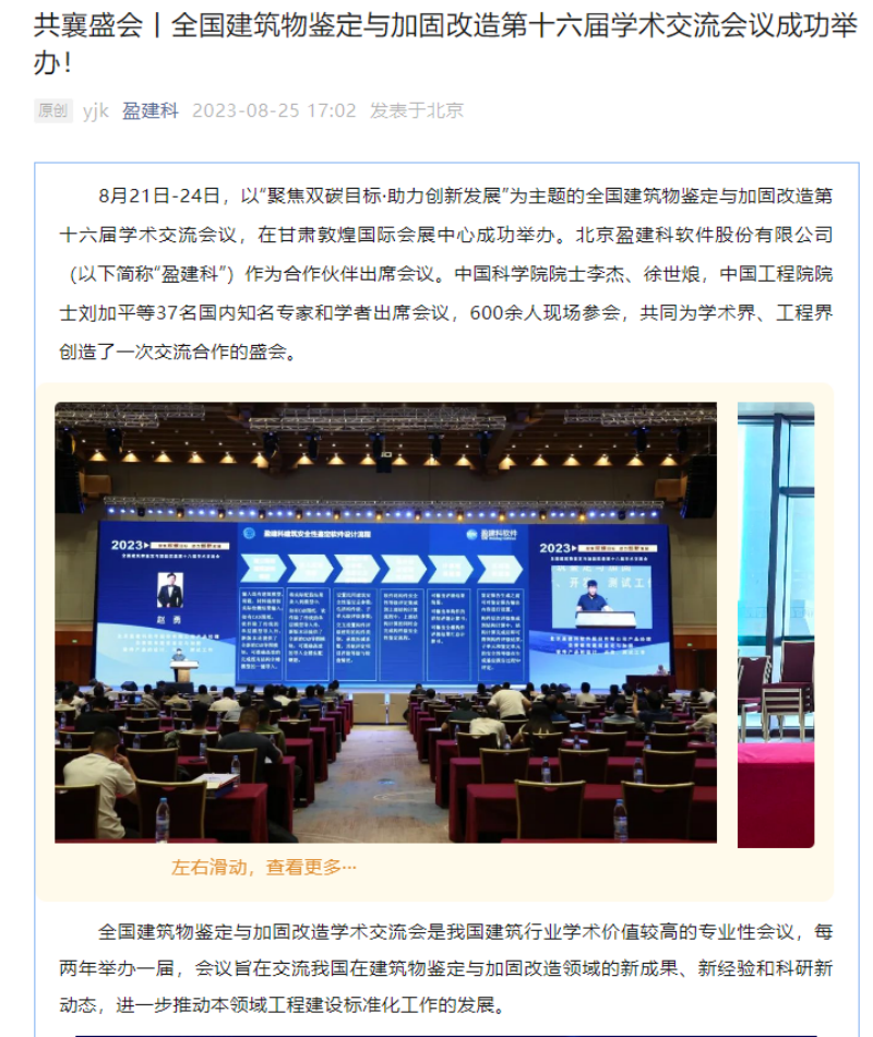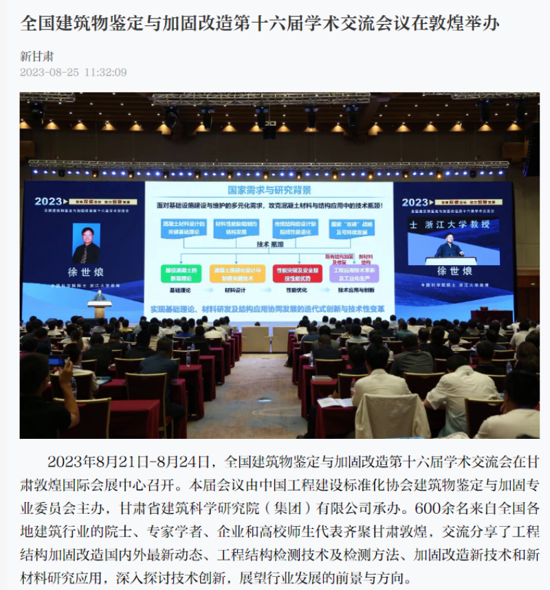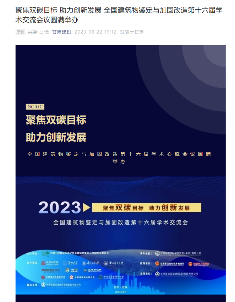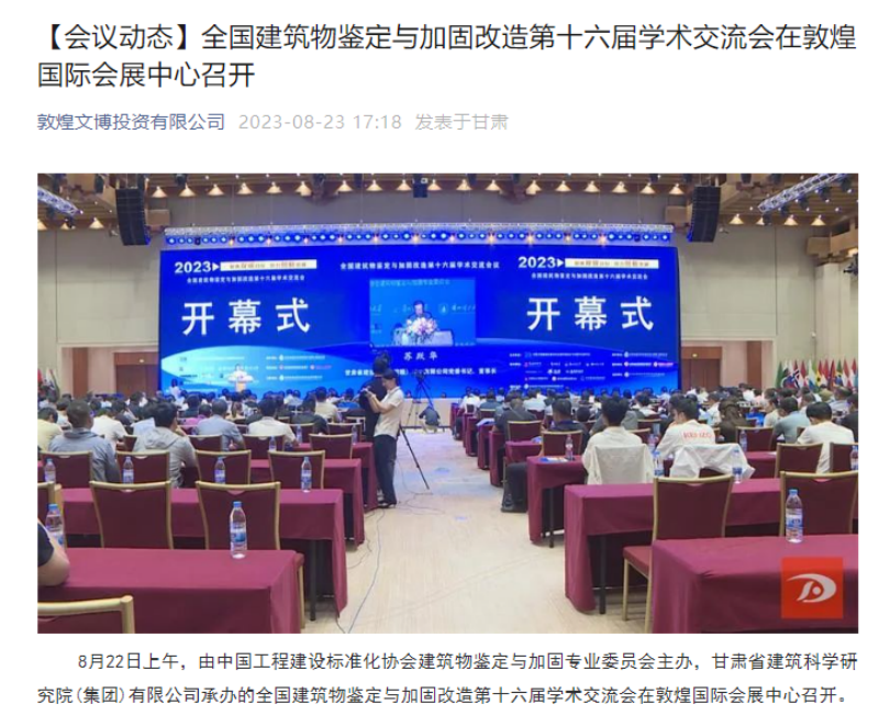 8月21日-8月24日,全國建筑物鑒定與加固改造第十六屆學(xué)術(shù)交流會在甘肅敦煌召開,由掌上敦煌、視聽甘肅、甘肅建科院視頻號平臺對會議現(xiàn)場進行直播,多家主流媒體紛紛聚焦報道。