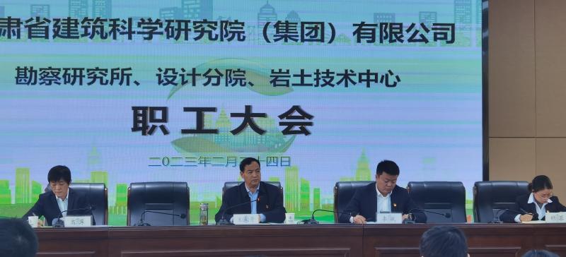會(huì)議傳達(dá)了建科院一屆二次職代會(huì)暨生產(chǎn)動(dòng)員大會(huì)會(huì)議精神,領(lǐng)學(xué)了《甘肅省建筑科學(xué)研究院(集團(tuán))有限公司2023年工作報(bào)告》,同時(shí),總結(jié)了2022年度科技創(chuàng)新工作和生產(chǎn)經(jīng)營(yíng)工作,并對(duì)2023年重點(diǎn)工作進(jìn)行了安排部署。