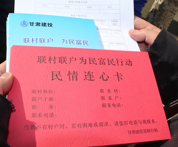 行動結(jié)束之后,行動小組向每戶人家都發(fā)放了“聯(lián)村聯(lián)戶 為民富民”宣傳手冊和民情連心卡,讓他們有需求早反應(yīng),也可以有困難早幫助。