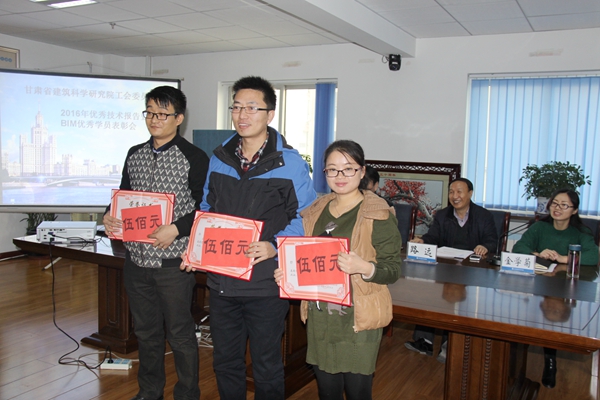 同時,科研院工會表彰了在BIM學習中涌現出的3名優(yōu)秀學員。在科技研發(fā)中心民主推薦的基礎上,經工會研究決定,舒蓉、孫文、潘星三位同志榮獲BIM優(yōu)秀學員。今年我院組織19人參加了BIM培訓,8人通過考試并取得了BIM一級建模師資格。經過培訓,我院在第15屆中國住博會·2016年中國BIM技術交流會上榮獲最佳BIM綜合應用獎和甘肅省“建投杯”造價BIM建模大賽優(yōu)秀企業(yè)獎及個人優(yōu)秀獎。通過表彰優(yōu)秀學員,激勵全院職工主動學習,積極參加各類培訓,樹立終身學習意識,培養(yǎng)向實踐學習、向工作學習、向先進學習的理念和精神,以此進一步提高技術本領,推動建筑科研中心工作取得更大成績。
