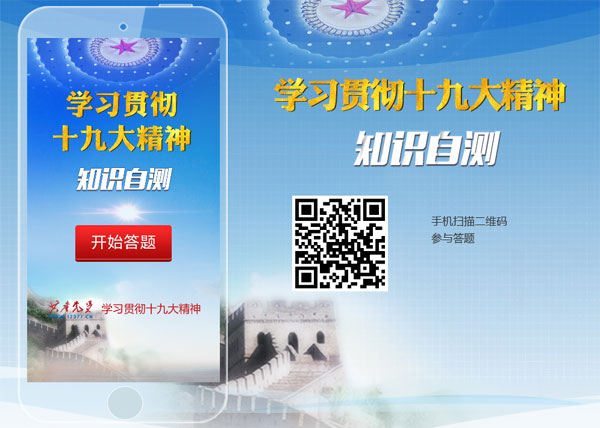 網(wǎng)友可登錄共產(chǎn)黨員網(wǎng)首頁,進入“學習貫徹十九大精神知識自測”專區(qū)進行答題,或者通過手機掃描二維碼參與答題。
