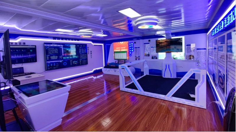 展廳是旅客過(guò)夜用房項(xiàng)目的重要組成部分,具有多項(xiàng)功能。決策中心顯示大屏實(shí)時(shí)展示工地的各項(xiàng)數(shù)據(jù),包括施工進(jìn)度、安全指標(biāo)、環(huán)境監(jiān)測(cè)等,為管理人員提供決策依據(jù)。安全管理顯示大屏展示工地的安全情況,包括監(jiān)控畫(huà)面和報(bào)警信息,以保障工人的安全?,F(xiàn)場(chǎng)急救體驗(yàn)系統(tǒng)的安裝提高了工人的風(fēng)險(xiǎn)意識(shí)和應(yīng)急處置能力。此外,VR安全體驗(yàn)設(shè)備和黨建互動(dòng)展廳設(shè)備的安裝也為管理人員及工人提供了一系列安全模擬體驗(yàn)和黨務(wù)知識(shí)傳遞。