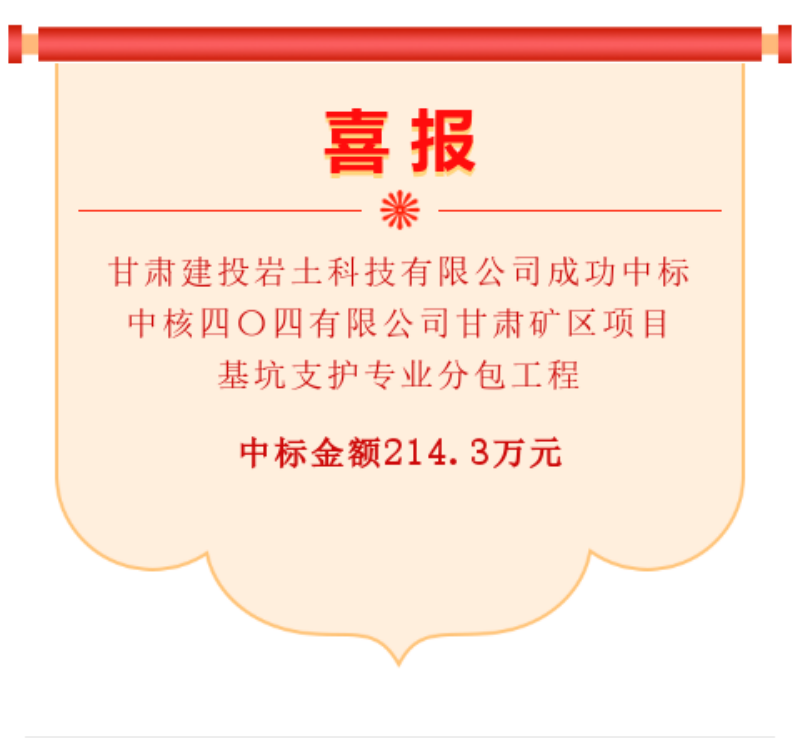 甘肅建投巖土科技有限公司成功中標(biāo)中核四〇四有限公司甘肅礦區(qū)項目基坑支護(hù)專業(yè)分包工程
