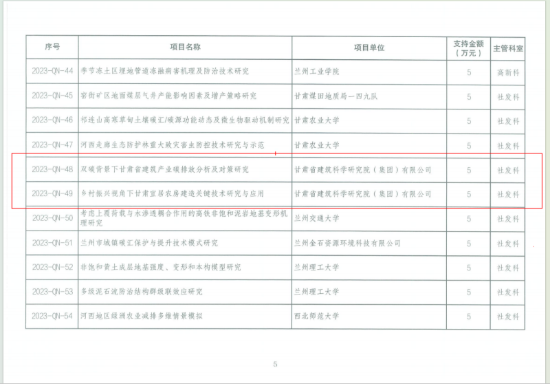 近日,蘭州市2023年青年科技人才創(chuàng)新項(xiàng)目名單公布,甘肅建科院申報(bào)的《雙碳背景下甘肅省建筑產(chǎn)業(yè)碳排放分析及對策研究》《鄉(xiāng)村振興視角下甘肅宜居農(nóng)房建造關(guān)鍵技術(shù)研究與應(yīng)用》2項(xiàng)目獲批立項(xiàng),共獲批經(jīng)費(fèi)10萬元。
