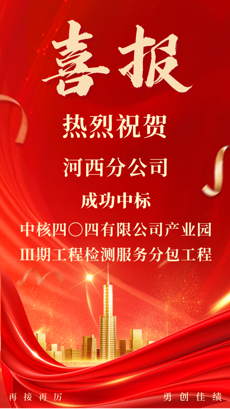 2月27日,河西分公司成功中標(biāo)中核華辰建筑工程有限公司承建的中核四0四有限公司產(chǎn)業(yè)園Ⅲ期工程檢測服務(wù)分包工程。