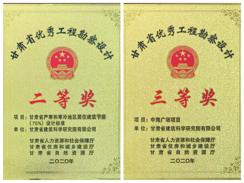 9月,2020年度甘肅省優(yōu)秀工程勘察設(shè)計獎評選結(jié)果正式公布,建科院(集團)公司申報的項目摘獲2個獎項。其中,科技研發(fā)中心申報的《嚴寒和寒冷地區(qū)居住建筑節(jié)能(75%)設(shè)計標準》項目榮獲二等獎(標準類),這是繼2010年以來又一次獲獎,并且獲獎等級提升為二等獎,同時也是第一次以標準類項目獲獎,實現(xiàn)了建科院科技工作上新的突破??辈煅芯克吨泻V場項目》喜獲2020年度甘肅省優(yōu)秀工程勘察設(shè)計獎勘察類三等獎。