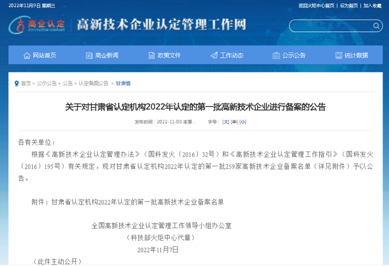 近日,高新技術(shù)企業(yè)認定管理工作網(wǎng)發(fā)布公告,公布了甘肅省認定機構(gòu)2022年認定的第一批高新技術(shù)企業(yè)進行備案名單。甘肅建科院榜上有名,順利通過高新技術(shù)企業(yè)復(fù)評。