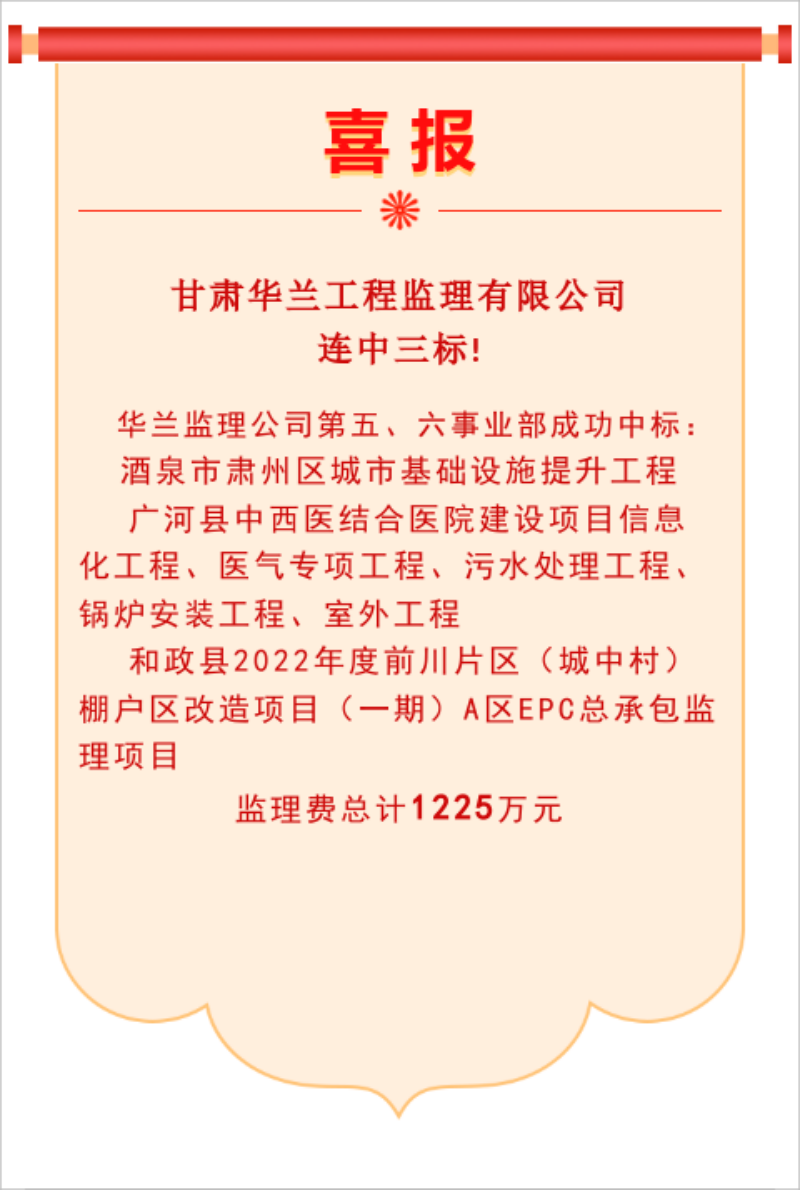 甘肅華蘭工程監(jiān)理有限公司連中三標!