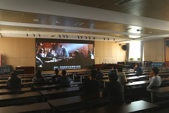 下午在會議室,大家集體觀看了愛國影片《建國大業(yè)》,觀影結(jié)束后,職工們感嘆道在和平年代的今天,雖然我們不必經(jīng)受戰(zhàn)火,但是我們?nèi)杂胸熑斡辛x務為建設祖國更美好的明天,貢獻自己的一份力量!