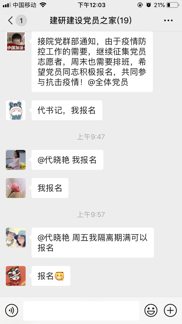 筑牢生命防線,踐行初心使命,共產(chǎn)黨員責無旁貸。面對疫情下的復(fù)工復(fù)產(chǎn),建科院建研建設(shè)公司的黨員頂上去,沖在前,踐行著入黨時許下的錚錚誓言。2020年2月4日,建研建設(shè)公司黨支部發(fā)起主題黨日活動“倡議我響應(yīng),防控我行動”。疾風知勁草,2月7日建研建設(shè)公司建立黨員責任區(qū),征集志愿者,廣大黨員踴躍報名,迎難而上,沖鋒在前,無私奉獻,積極投入到疫情防控工作中。