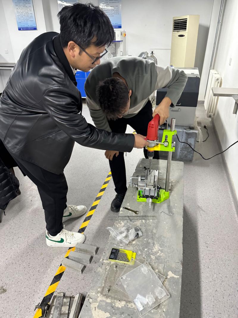 《裝配式建筑質(zhì)量檢測關(guān)鍵技術(shù)體系研究》課題是中心目前在研的甘肅建投重大科技項目,重點針對裝配式混凝土結(jié)構(gòu)套筒連接灌漿料強度檢測及密實度檢測進行研究,需要大量的試驗數(shù)據(jù)支撐。為保質(zhì)保量完成課題研究任務(wù),科技研發(fā)中心組建裝配式建筑質(zhì)量檢測課題小組,積極開展試驗研究,相互緊密配合,嚴格把控精度,按照試驗方案有序推進。