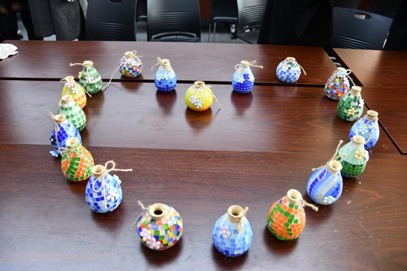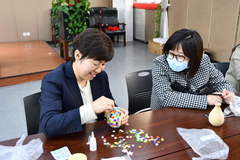 表彰會(huì)后,女職工們開(kāi)展了“巧手慧心——瓶添樂(lè)趣”為主題的創(chuàng)意花瓶DIY活動(dòng)。根據(jù)馬賽克圖案與素色花瓶,巧妙地將藝術(shù)、創(chuàng)意、趣味等眾多元素融合在一起,讓女職工們?cè)诨ㄆ可习l(fā)揮自己的想象力,拼貼出獨(dú)一無(wú)二的特色花瓶。美好的時(shí)光總是讓人覺(jué)得短暫,短短一個(gè)半小時(shí),一個(gè)個(gè)創(chuàng)意花瓶出爐。大家對(duì)自己親手制作的精美花瓶充滿了成就感,也紛紛進(jìn)行了作品之間的點(diǎn)贊互評(píng)。通過(guò)本次活動(dòng),不僅讓廣大女職工們體會(huì)到創(chuàng)作過(guò)程的樂(lè)趣及得到成品后的滿足感,還營(yíng)造了慶?!叭恕眿D女節(jié)的濃厚氛圍,增進(jìn)了女職工之間的感情,進(jìn)一步推動(dòng)了企業(yè)文化建設(shè)工作。