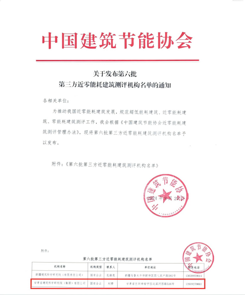 8月30日,中國建筑節(jié)能協(xié)會發(fā)布了第六批第三方近零能耗建筑測評機構名單,甘肅建科院依托完善的管理體系和工作基礎、憑借自身豐富的咨詢經(jīng)驗和檢測技術優(yōu)勢以及完備的人才體系,獲評為第三方近零能耗建筑測評機構。
