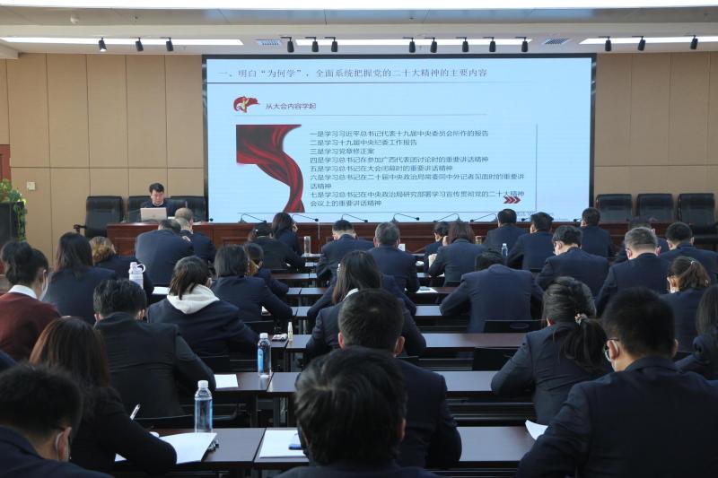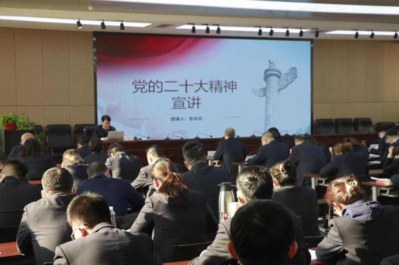 12月23日,甘肅建科院黨委書記、董事長(zhǎng)張永志在建研大廈12樓為全司黨員干部職工宣講黨的二十大精神。公司領(lǐng)導(dǎo)班子成員、主管級(jí)干部和部分黨員共120余人參加了會(huì)議。