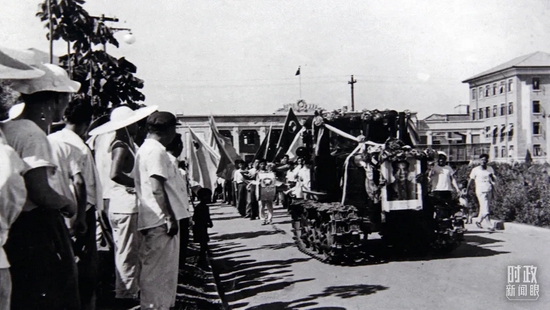 △1958年7月,第一臺(tái)國(guó)產(chǎn)“東方紅”牌拖拉機(jī)在洛陽(yáng)拖拉機(jī)廠下線。(圖/視覺(jué)中國(guó))
