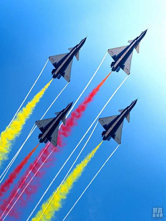 △11月11日是解放軍空軍成立日。這是今年珠海航展上“八一”表演隊(duì)的飛機(jī)表演。(圖/視覺(jué)中國(guó))