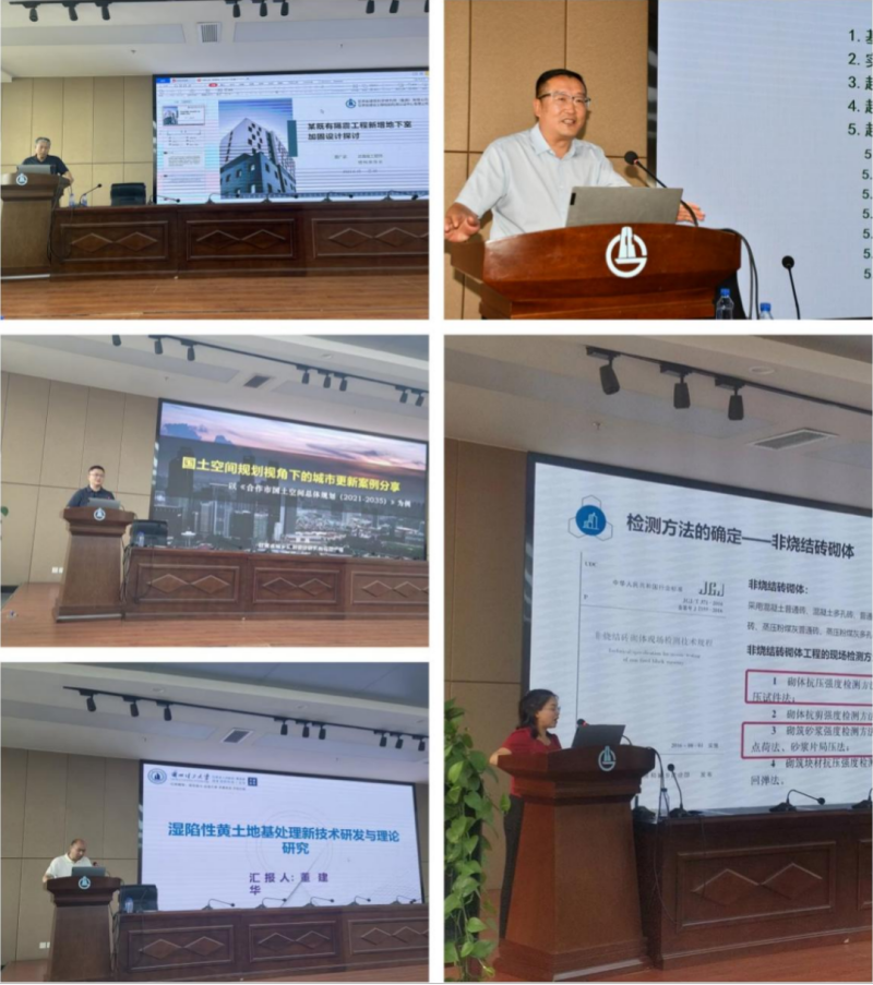 換屆大會結(jié)束后,岳亭龍、羅堯、董建華、舒蓉、夏廣錄等專家分別作了題為《超低能耗建筑關(guān)鍵集成技術(shù)》《國土空間規(guī)劃視角下的城市更新案例分享》《濕陷性黃土地區(qū)處理新技術(shù)研發(fā)與實踐》《非燒結(jié)混凝土多孔磚抗壓強度修正及相關(guān)問題探討》《某既有隔震工程新增地下室加固設(shè)計探討》的學術(shù)交流。