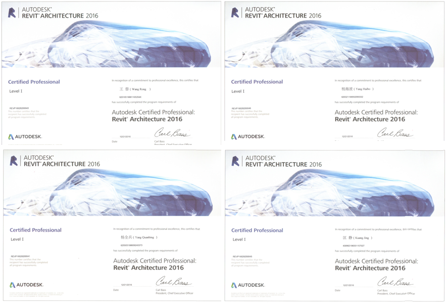 2016年12月3日我中心人員參加了由AUTODESK組織的REVIT ARCHITECTURE認證工程師考試,并于12月21日取得資格證書。這是繼我院八名同志取得REVIT等級證書后又獲得的重要成果,也是我中心人員通過不同渠道和方式獲得REVIT ARCHITECTURE資格認證,為我院今后開展BIM工作奠定了堅實的基礎,同時也為我院在獲取AUTODESK工程師資格認證的的道路上又另辟了新徑,為我院廣大職工在今后考取AUTODESK工程師資格認證方向探明了方向和渠道。