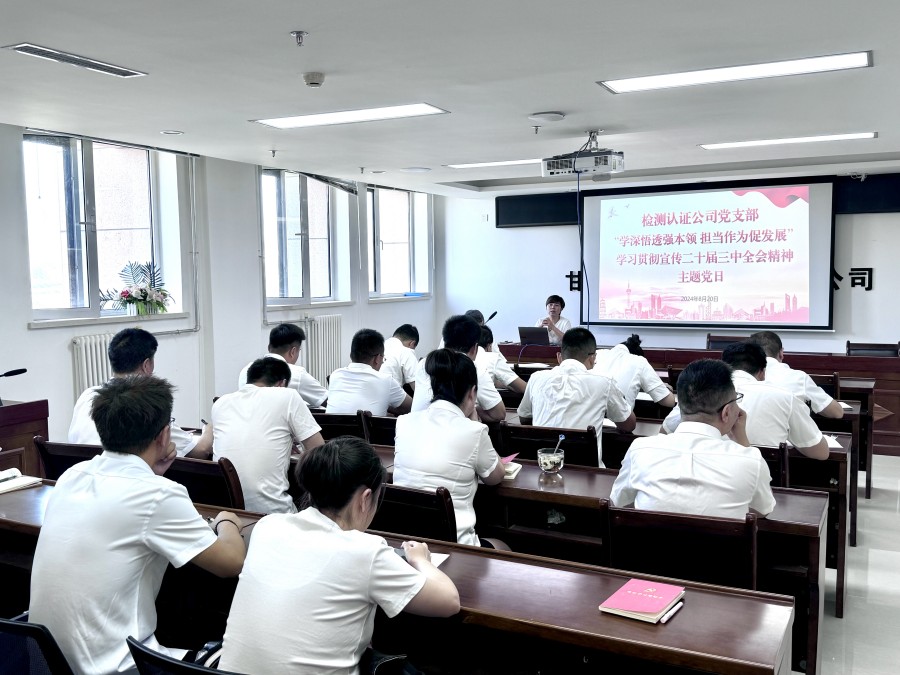 為深入學(xué)習(xí)貫徹習(xí)近平新時代中國特色社會主義思想,認(rèn)真學(xué)習(xí)貫徹黨的二十屆三中全會精神,持續(xù)鞏固黨紀(jì)學(xué)習(xí)教育成果。8月20日,檢測認(rèn)證公司黨支部組織召開黨的二十屆三中全會精神專題學(xué)習(xí)主題黨日活動?;顒佑牲h支部書記代曉艷主持,部分在蘭黨員干部職工參加。
