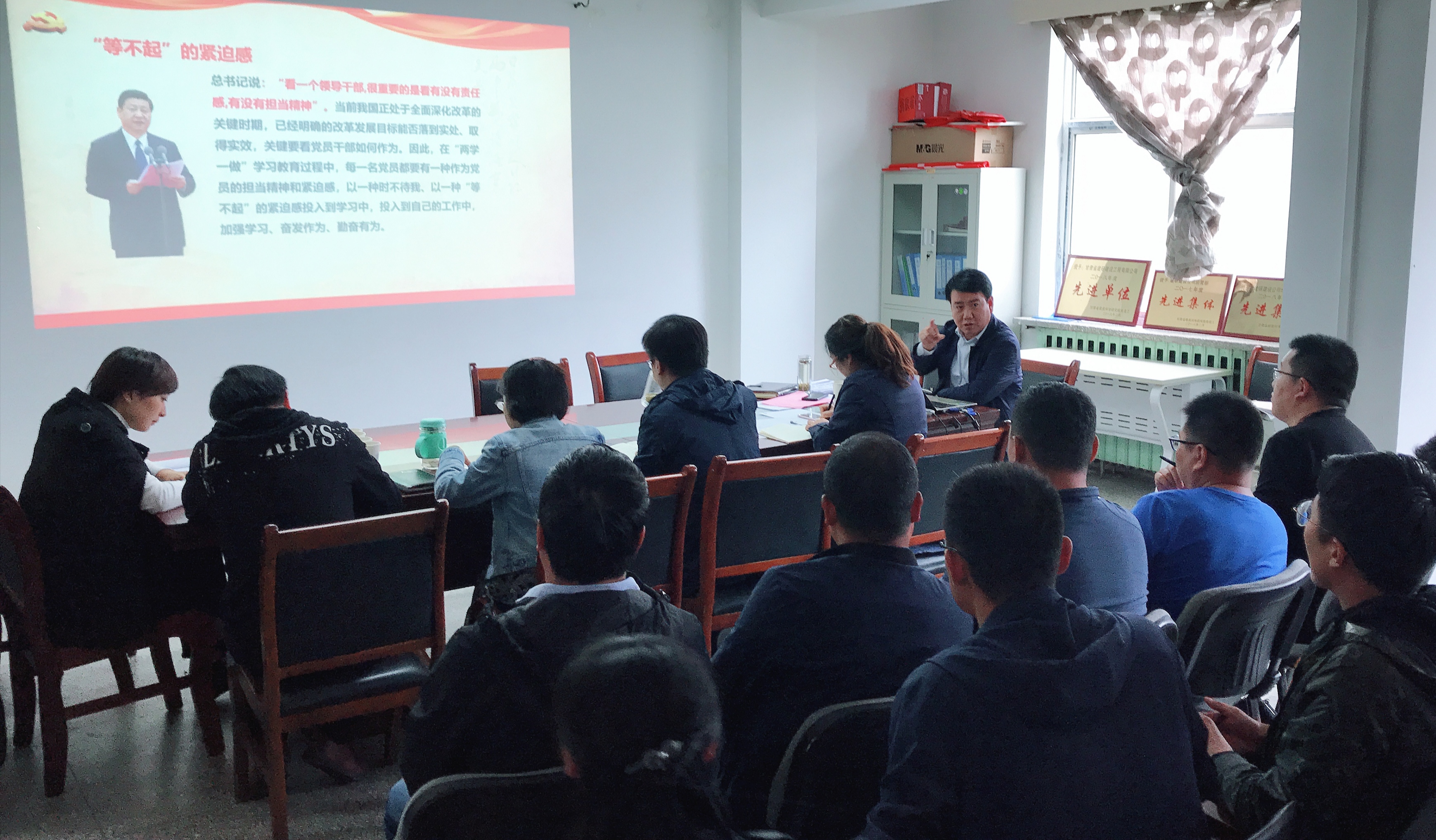 5月7日,科研院黨委書記、院長(zhǎng)張永志同志,黨群工作部副部長(zhǎng)張文琪同志、宣傳部副部長(zhǎng)呂佳同志一行3人赴建研建設(shè)公司就黨建、生產(chǎn)、經(jīng)營(yíng)工作進(jìn)行調(diào)研。建研建設(shè)公司領(lǐng)導(dǎo)班子及在蘭項(xiàng)目管理人員40余人參加了調(diào)研活動(dòng)。