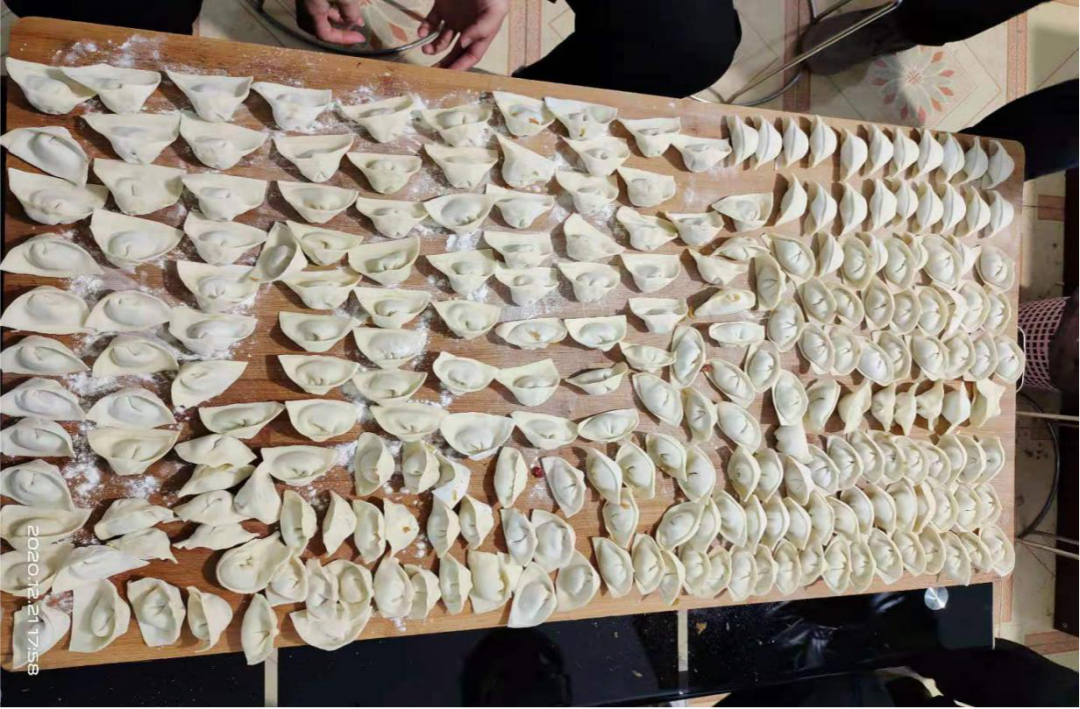臨夏的下午四點半,暖陽還懶洋洋地照在人們的臉上,穿過干枯的樹枝,落在地上依稀的斑駁,臨夏檢測中心職工的身影就已經(jīng)忙碌了起來,大家紛紛趕到食堂,邊包餃子邊話佳節(jié)。伴隨著你一言,我一語,拌陷、和面、搓面球、搟面皮、包起成型,流水線工作一氣呵成,個個臉上都洋溢著喜悅與興奮。不用說包餃子的過程有多么精彩,就看這每個人包出的五花八門的餃子模樣,就讓人笑得合不攏嘴。2個小時300多個餃子輕輕松松包完了,看著自己包的餃子,成就感滿滿。