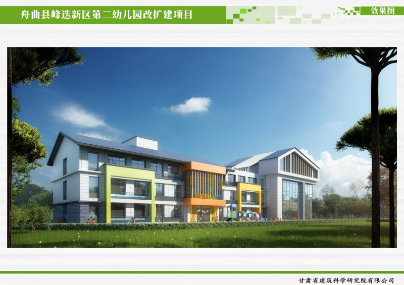舟曲縣峰迭新區(qū)第二幼兒園項目工程為框架結(jié)構(gòu),總建筑面積2687.48㎡,新建消防水池及水泵房1座,新建門房1座。為保證幼兒的安全,項目在實施過程中采用了隔震支座,減低地震對建筑物造成的危害。項目建成后,將有效緩解舟曲峰迭新區(qū)幼兒入園難的問題,為周邊適齡幼兒提供優(yōu)質(zhì)教育提供環(huán)境優(yōu)美、設(shè)施齊全、功能完備的學習、生活場所。