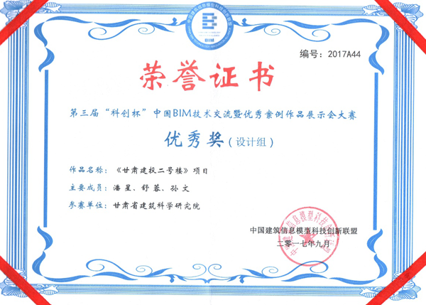 由中國(guó)建筑信息模型科技創(chuàng)新聯(lián)盟和中國(guó)科技產(chǎn)業(yè)化促進(jìn)會(huì)共同主辦的第三屆“科創(chuàng)杯”,中國(guó)BIM技術(shù)交流暨優(yōu)秀案例獲獎(jiǎng)作品展示會(huì)大賽,于上月在中國(guó)國(guó)際展覽中心新館順利召開(kāi)。大賽分別設(shè)有設(shè)計(jì)組、施工組、運(yùn)維組、院校組及優(yōu)秀個(gè)人組五組賽區(qū),全國(guó)共有參賽作品700多項(xiàng)。在經(jīng)過(guò)數(shù)天的展示評(píng)選后,科研院參賽作品《甘肅建投二號(hào)綜合樓BIM咨詢服務(wù)項(xiàng)目》榮獲設(shè)計(jì)組優(yōu)秀獎(jiǎng)。
