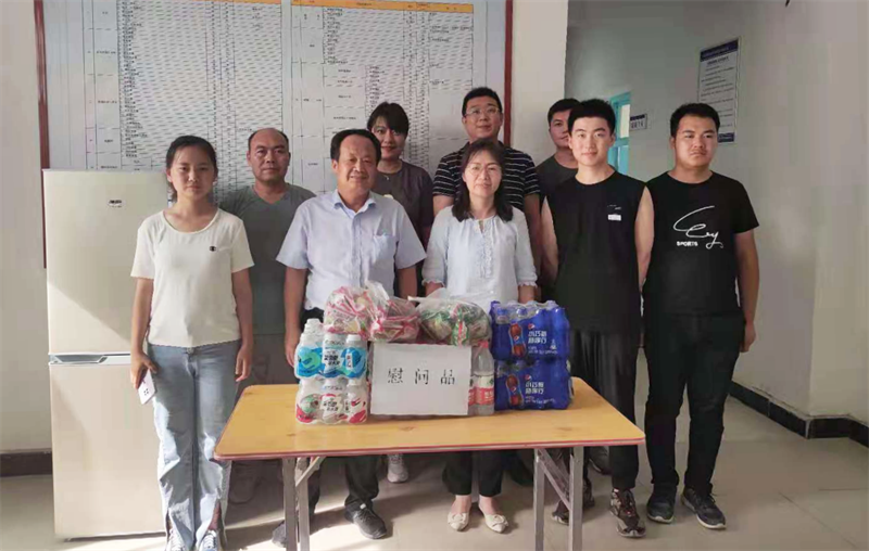 紀(jì)委書記、工會(huì)主席閻新明,副總經(jīng)理金學(xué)菊、黨委工作部部長趙欣一行人到蘭州新區(qū)檢測中心,為職工送來涼茶、茶葉、冰糖、毛巾等防暑降溫物品。