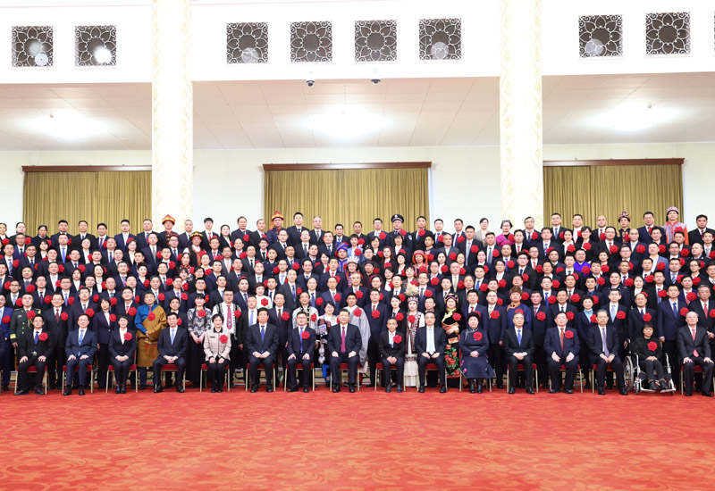 會前,習近平等領導同志會見了全國脫貧攻堅楷模榮譽稱號獲得者,全國脫貧攻堅先進個人、先進集體代表,全國脫貧攻堅楷模榮譽稱號個人獲得者和因公犧牲全國脫貧攻堅先進個人親屬代表等,并同大家合影留念。