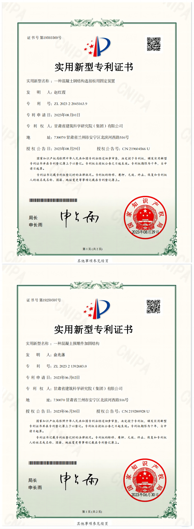近日,巖土技術(shù)中心“一種混凝土鋼結(jié)構(gòu)連接板用固定裝置”“一種混凝土預(yù)埋件加固結(jié)構(gòu)”獲實(shí)用新型專利授權(quán)。